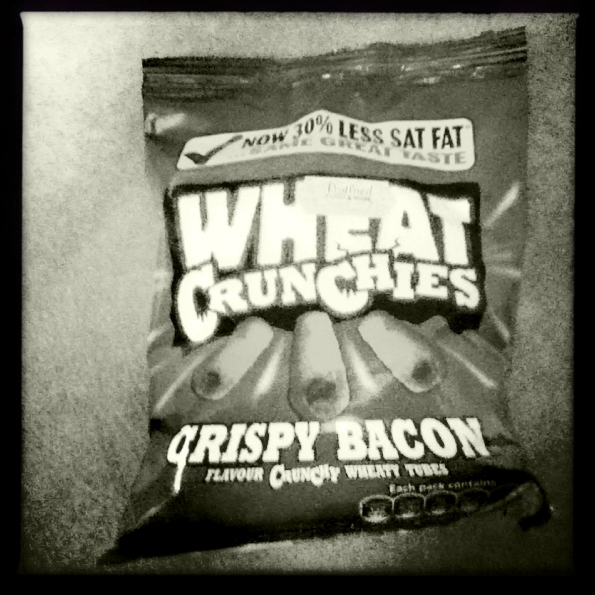 2320 I cave to my symptoms of croissant withdrawal. But no cravings for the Sizzling King Prawn crisps. Bacon-flavoured crisps? Damn straight.