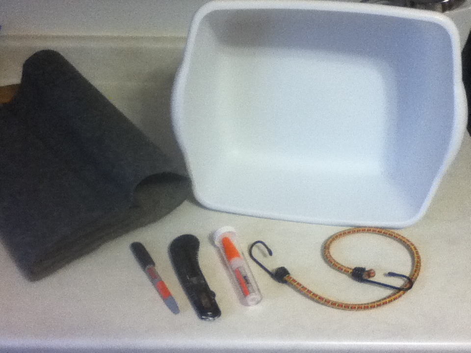 - Plastic dish pan ($3.89 at Sprawl-mart).